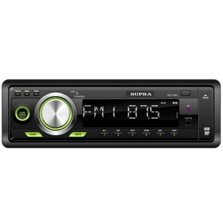 SFD-109U - автомагнитола с выходом AUX на передней панели. Краткие технические характеристики: 4x50 Вт, монохромный дисплей, усилитель, эквалайзер, FM/AM радио, MP3, WMA, USB, слот для карт памяти SD/MMC.